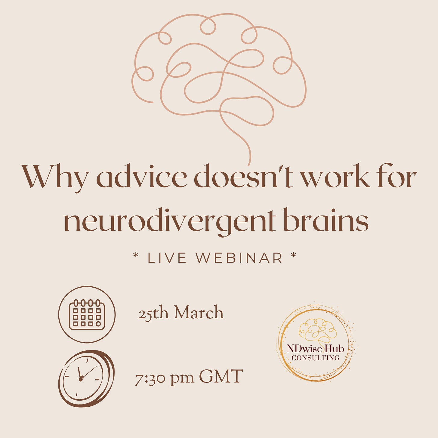 I hope you will join me on the 25th or March at 7:30pm GMT when I will host a webinar exploring advice in neurodivergent contexts in more depth.